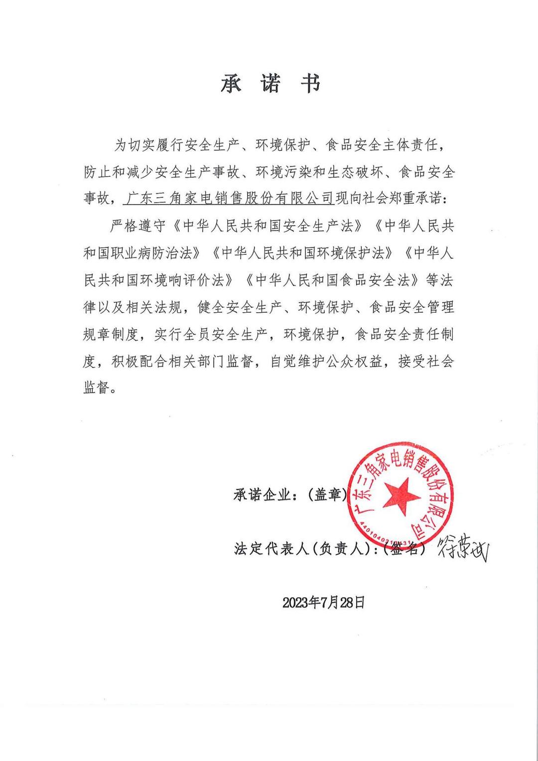 家电销售公司承诺公告